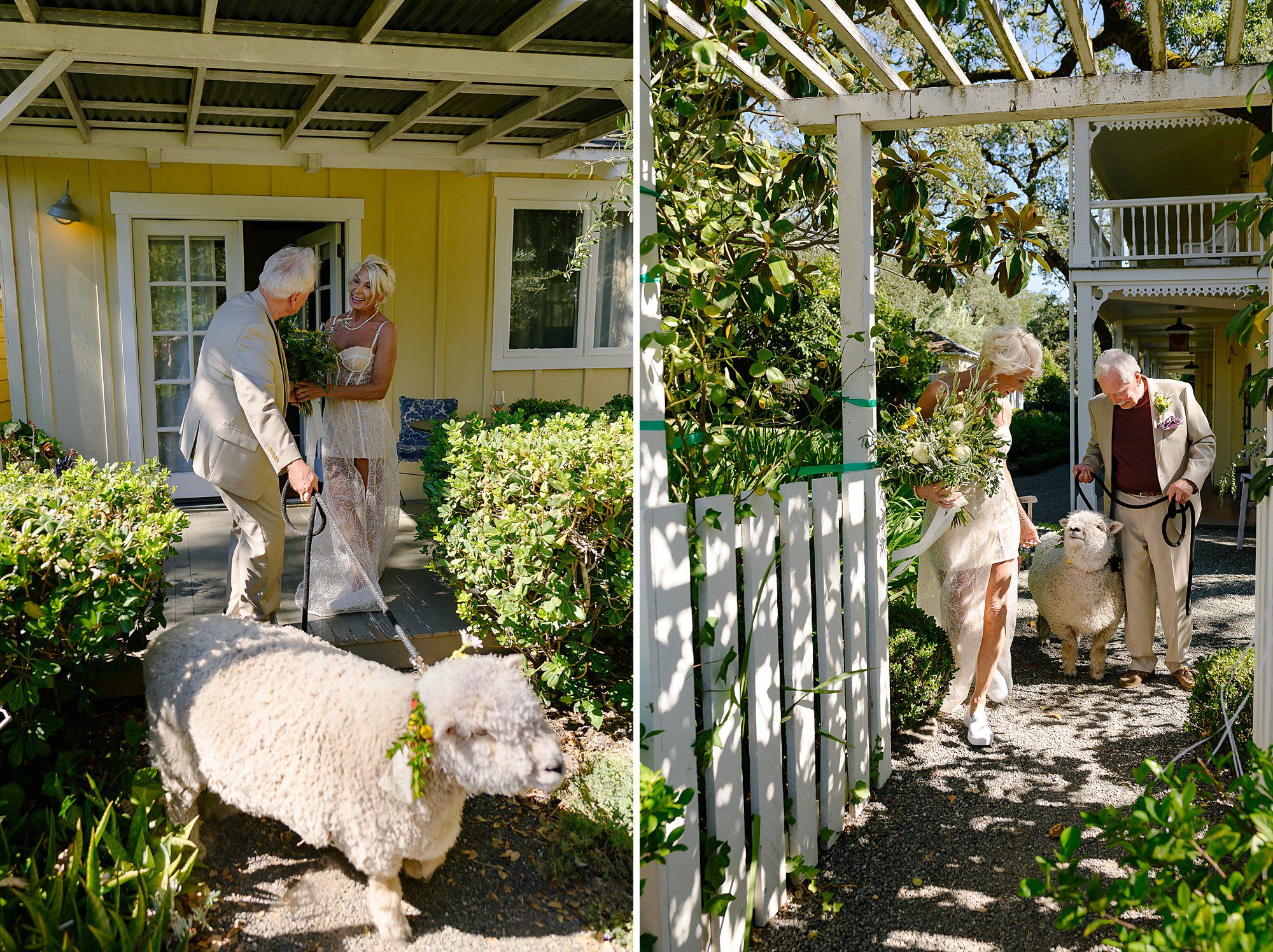 Lynn and Barry traveled from the East Coast to Sonoma County for an unforgettable weekend filled with romance, wine, food, and adorable farm animals. Their purpose was to elope in the vineyard, but their ultimate experience was so much more. Lynn, Barry, and I bonded long before they arrived in wine country. They originally planned to elope at a beautiful private estate in Napa. But after reading about Beltane Ranch, they pivoted their entire plan. Turns out they love adorable animals as much as I do.
